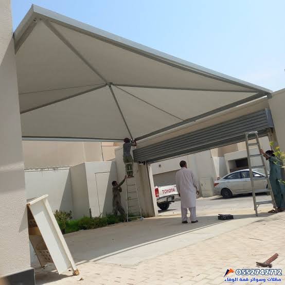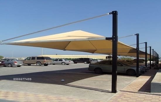 مظلات سيارات قماشية: تبدأ من 170 ريال للمتر المربع.